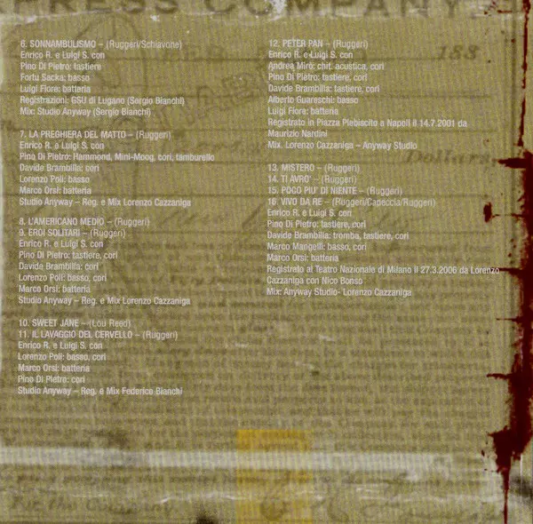 Backing Vocals Davide Brambilla | Bass, Backing Vocals Lorenzo Poli | Drums Marco Orsi | Keyboards, Backing Vocals Pino Di Pietro | Performer Enrico Ruggeri, Luigi Schiavone | Recorded By, Mixed By Lorenzo Cazzaniga | Written-By Enrico Ruggeri