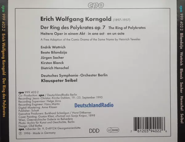 | Artist | Erich Wolfgang Korngold | Deutsches Symphonie-Orchester Berlin | Dietrich Henschel | Klauspeter Seibel | Beate Bilandzija | Endrik Wottrich | Jürgen Sacher | Kirsten Blanck |