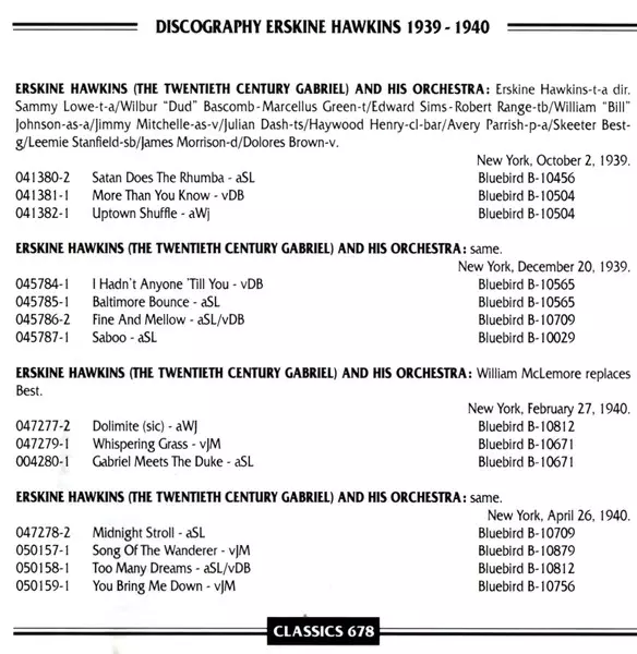 | Artist | Erskine Hawkins And His Orchestra |