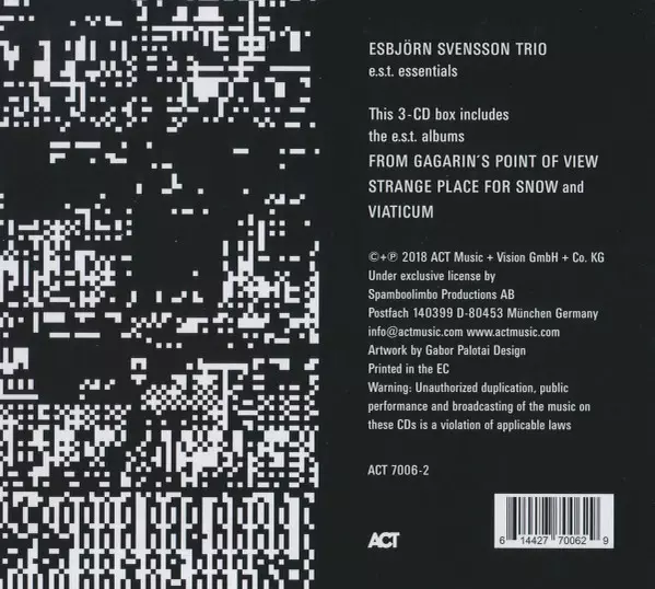 Esbjörn Svensson Trio, commonly known as E.S.T., was a Swedish jazz piano trio formed in 1993 and consisting of Esbjörn Svensson , Dan Berglund , and Magnus Öström . The trio gained international acclaim for their innovative approach to jazz, often incorporating elements of classic...