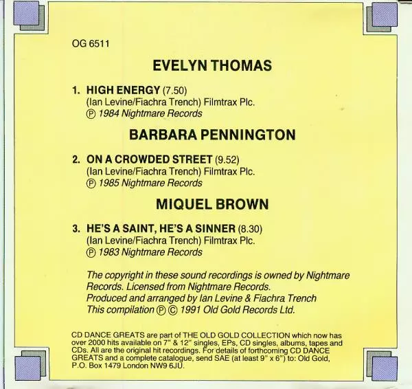 | Artist | Evelyn Thomas | Miquel Brown | Barbara Pennington |