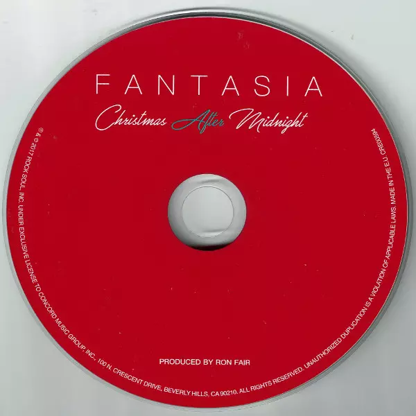 Fantasia: Christmas After Midnight version on CD in Standard edition. This particular edition was published in Europe in publishing company Rock Soul Entertainment in cooperation with Concord Records on 17. November 2017. Album spans genres Pop, Funk / Soul and Christmas.