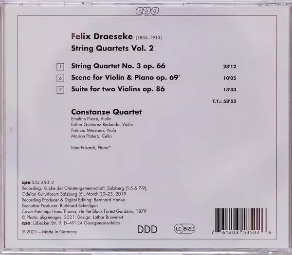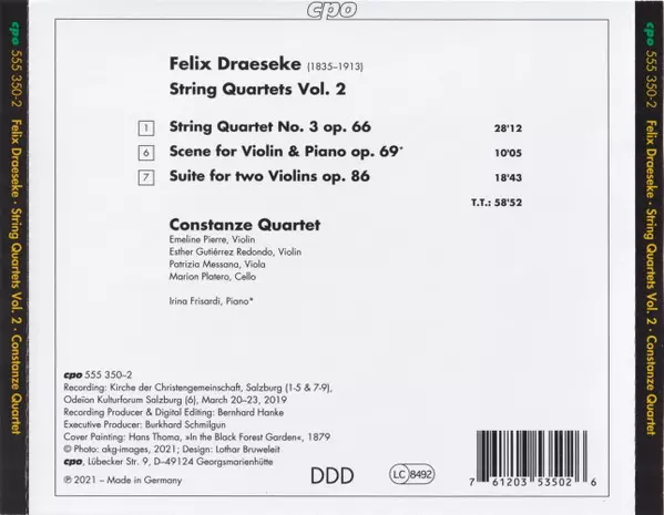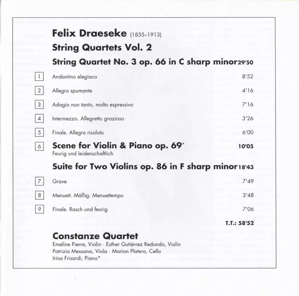 | Artist | Felix Draeseke | Constanze Quartet |