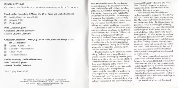 | Artist | Felix Mendelssohn-Bartholdy | Ernest Chausson | Bella Davidovich | Dmitry Sitkovetsky |