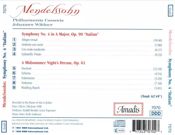 | Title | Symphony No. 4 "Italian"/A Midsummer Night's Dream |