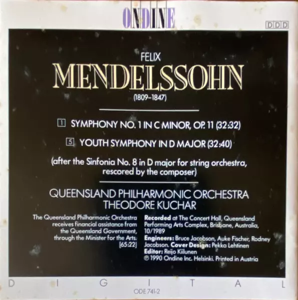 | Artist | Felix Mendelssohn-Bartholdy | Theodore Kuchar | Queensland Philharmonic Orchestra |