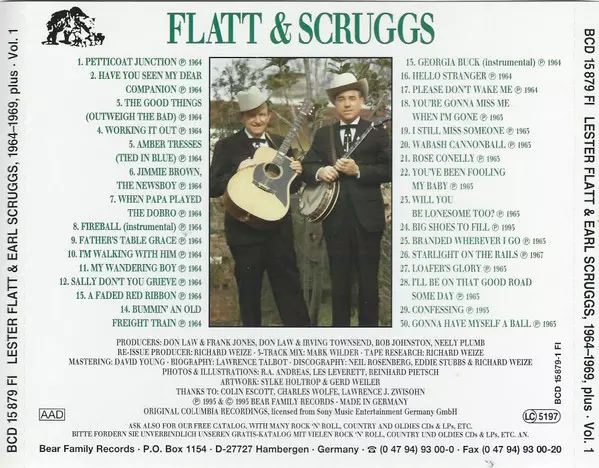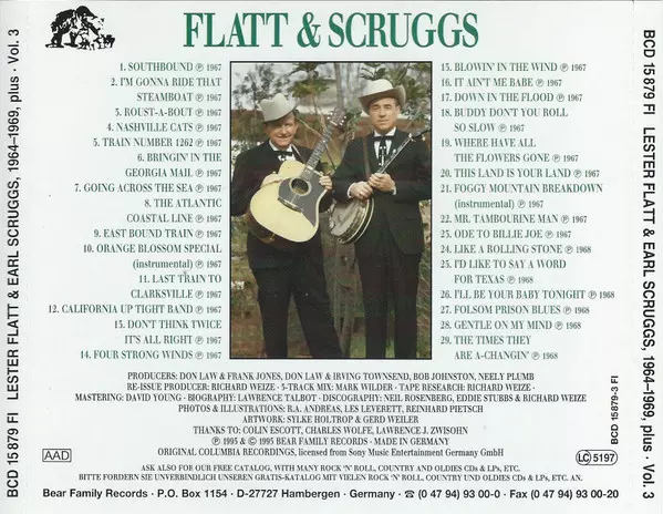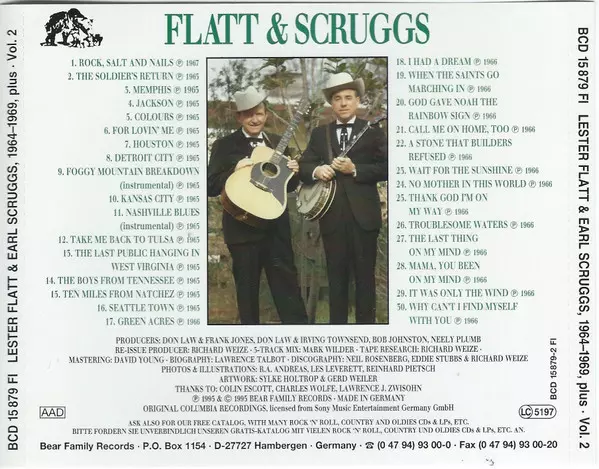 Flatt & Scruggs: 1964-1969, Plus version on 6CD/Box Set in Standard edition. This particular edition was published in Germany in publishing company Bear Family Records year 2000. Album spans genres Folk, World, & Country, Country, Bluegrass and Gospel.
