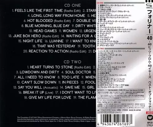 Foreigner: 40 version on 2CD in Remastered edition. This particular edition was published in Japan in publishing company Rhino Records (2) in cooperation with Atlantic on 30. June 2017.