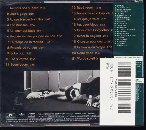 France Gall: Best Of France Gall version on CD in Standard edition. This particular edition was published in Japan in publishing company Polydor on 3. September 2008. Album spans genres Rock, Pop, Chanson and Yé-Yé.