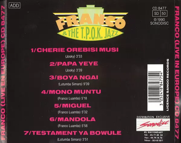| Artist | Orchestre T.P.O.K. Jazz | Franco |