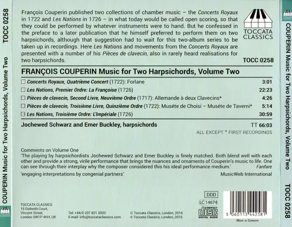 | Title | Les Nations: Sonates Et Suites De Symphonies En Trio And Other Pieces For Two Harpsichords, Volume Two |