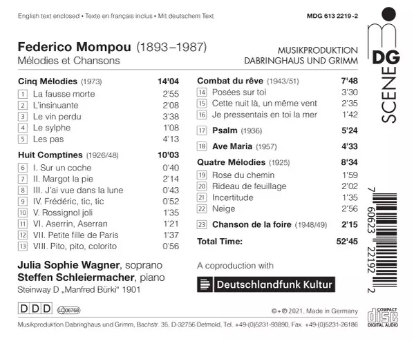 Artist | Frederic Mompou | Steffen Schleiermacher | Julia Sophie Wagner |