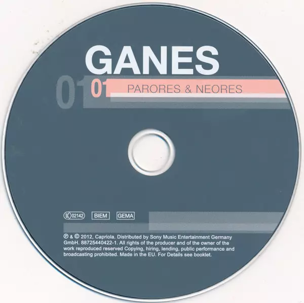 Ganes: Parores & Neores version on vinyl LP/CD in Standard edition. This particular edition was published in Germany in publishing company Blanko-Musik in cooperation with Capriola on 31. August 2012. Album spans genres Pop, Folk, World, & Country and Funk / Soul. LP + CD.
