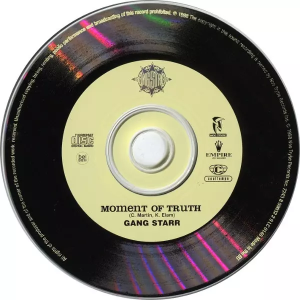 Gang Starr: Moment Of Truth version on CD in Standard edition. This particular edition was published in Europe in publishing company Noo Trybe Records in cooperation with Cooltempo on 17. May 2005.