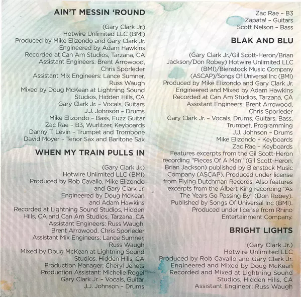 Bass Mike Elizondo | Drums J.J. Johnson (8) | Guitar Eric Zapata | Synthesizer [B3], Keyboards Zac Rae | Tabla, Percussion Satnam Ramgotra | Vocals, Guitar Gary Clark Jr. | Written-By [If You Love Me Like You Say] Little Johnny Taylor | Written-By [Third Stone From The Sun] Jimi Hendrix