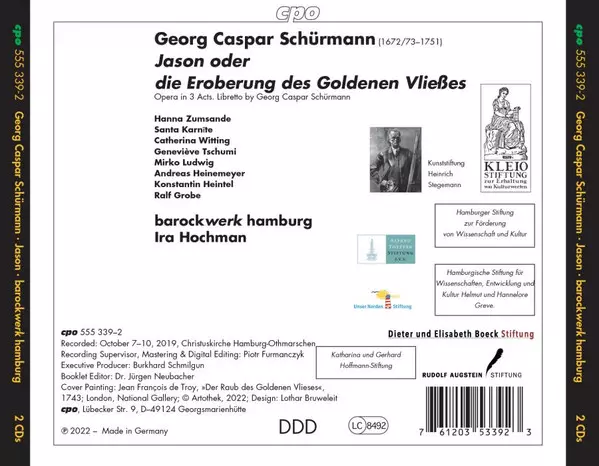 Barockwerk Hamburg: Jason version on 2CD in Standard edition. This particular edition was published in Europe in publishing company cpo on 6. May 2022. Album spans genres Classical, Baroque and Opera.