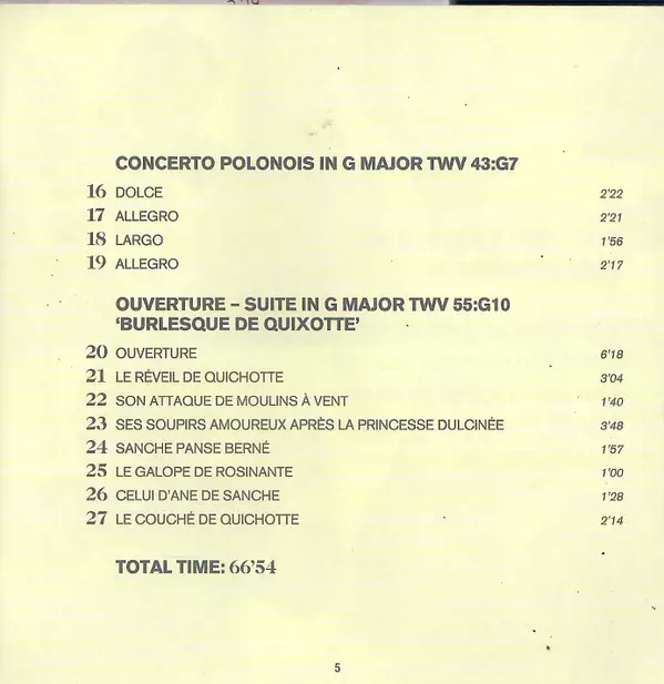 | Ouverture - Suite In G Major TWV 55:G10 "Burlesque De Quixotte" |