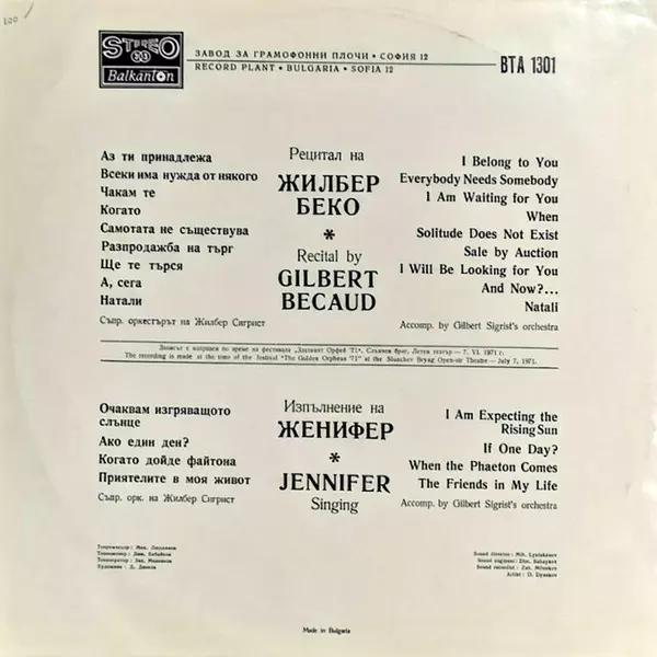 | Artist | Gilbert Bécaud | Jennifer |