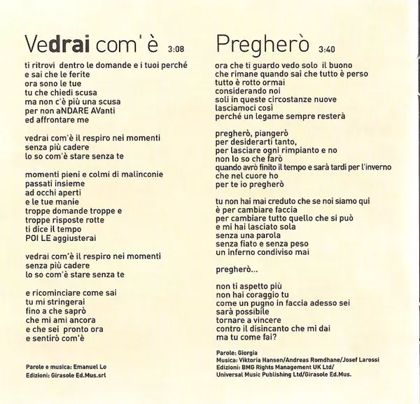 | Artist | Giorgia |