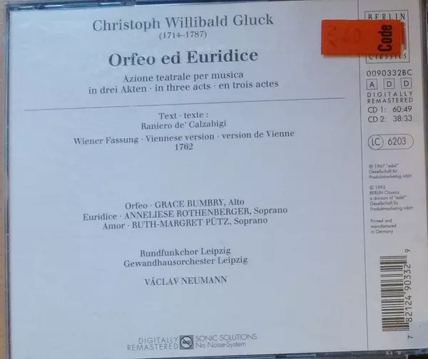 | Artist | Václav Neumann | Gewandhausorchester Leipzig | Christoph Willibald Gluck | Grace Bumbry | Anneliese Rothenberger | Ruth-Margret Pütz |