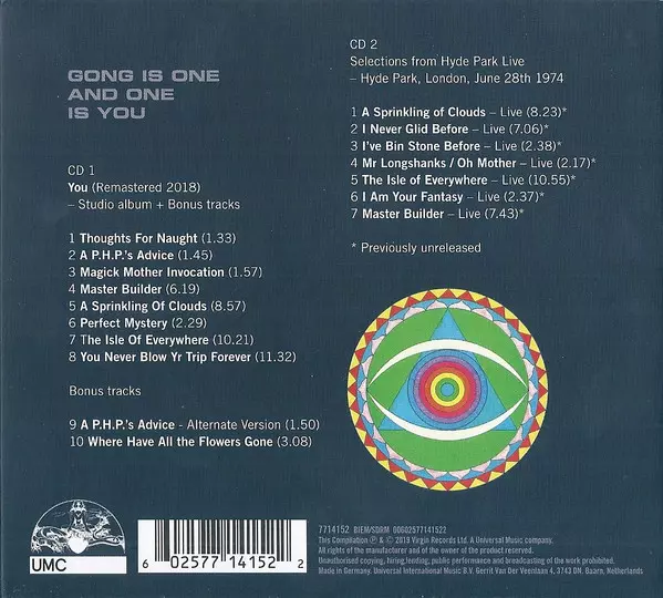 You je páté studiové album skupiny Gong a poprvé vyšlo v říjnu 1974. Nyní vychází remasterovaná verze alba, která byla rozšířena o dosud nevydaný záznam koncertu v londýnském Hyde Parku z června 1974, alternativní verzi písně "A PHP's Advice" a raritní verzi písně "Where Have All The Flowers Gone?". Na CD 1 dvojdisku jsou také dvě bonusové písně...