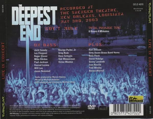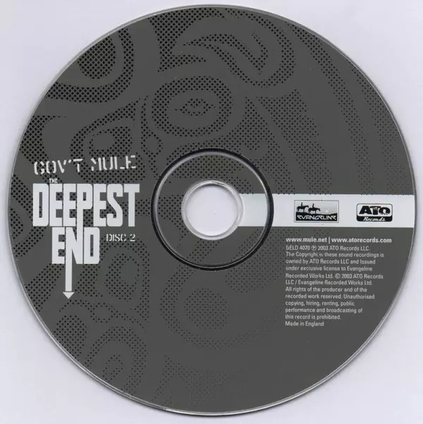 Gov't Mule: The Deepest End version on 2CD/DVD in Standard edition. This particular edition was published in United Kingdom in publishing company Evangeline in cooperation with ATO Records on 7. August 2015. Album spans genres Rock, Blues and Blues Rock. 2CD + DVD.