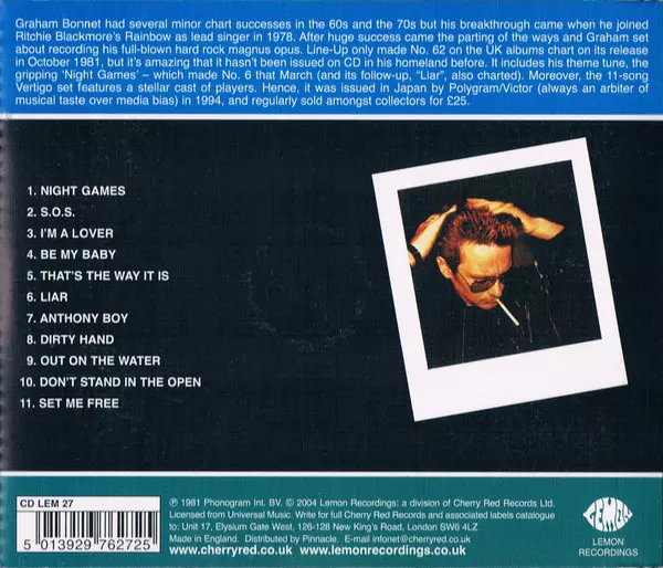 Graham Bonnet: Line-Up version on CD in Standard edition. This particular edition was published in United Kingdom in publishing company Lemon Recordings on 11. May 2004. Album spans genres Rock and Pop Rock.