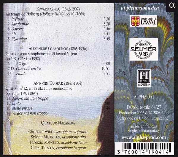 | Artist | Antonín Dvořák | Edvard Grieg | Alexander Glazunov | Quatuor Habanera |