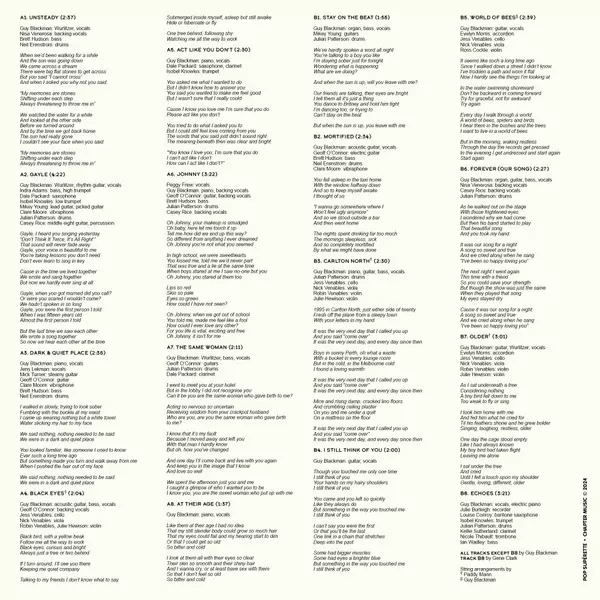 Bass, Trumpet [High] Indra Adams | Drums Julian Patterson | Guitar [Lead], Guitar [Picked] Mikey Young | Guitar [Middle Eight], Percussion Casey Rice | Saxophone Dale Packard | Trumpet [Low] Isobel Knowles | Vibraphone Clare Moore | Vocals, Guitar [Rhythm], Electric Piano [Wurlitzer] Guy Blackman