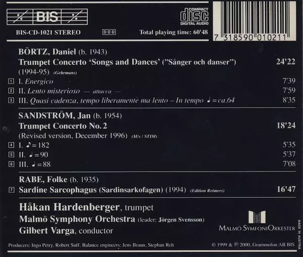Daniel Börtz: Trumpet Concerto 'Songs And Dances' = "Sånger Och Danser" | 18:24 min | ||