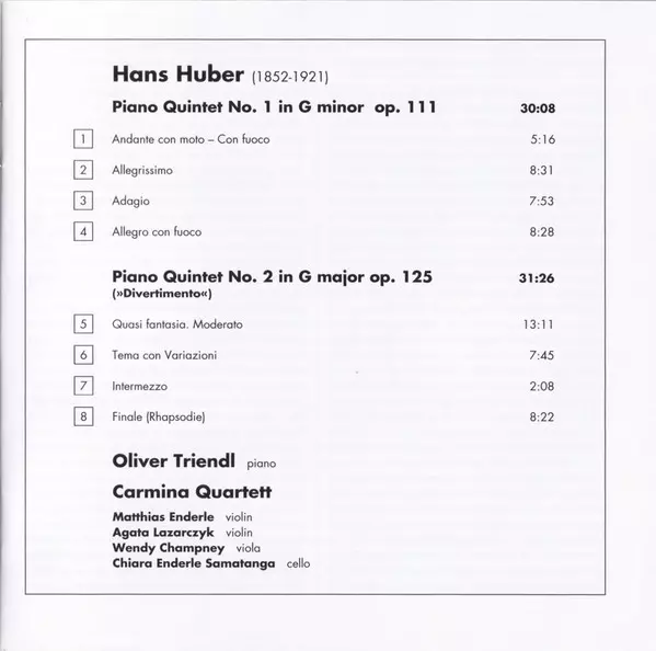 | Artist | Oliver Triendl | Carmina Quartet | Hans Huber |