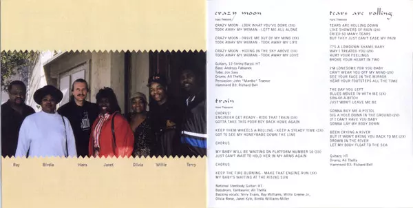 Backing Vocals Ray Williams (7), Terry Evans, Willie Greene Jr. | Drums Ali Thelfa | Organ, Piano Richard Bell (4) | Tuba Jon Sass | Vocals, Guitar Hans Theessink