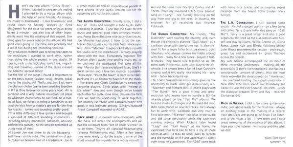 Backing Vocals Ray Williams (7), Terry Evans, Willie Greene Jr. | Drums Ali Thelfa | Horns Art Of Brass Vienna | Organ, Piano Richard Bell (4) | Tuba Jon Sass | Vocals, Guitar, Banjo, Mandola, Mandoguitar [Vox] Hans Theessink
