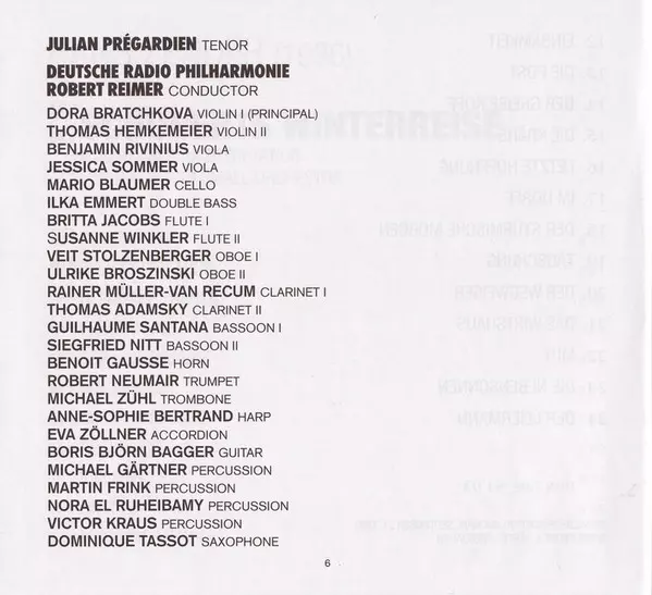| Artist | Julian Prégardien | Deutsche Radio Philharmonie Saarbrücken Kaiserslautern | Hans Zender | Robert Reimer |
