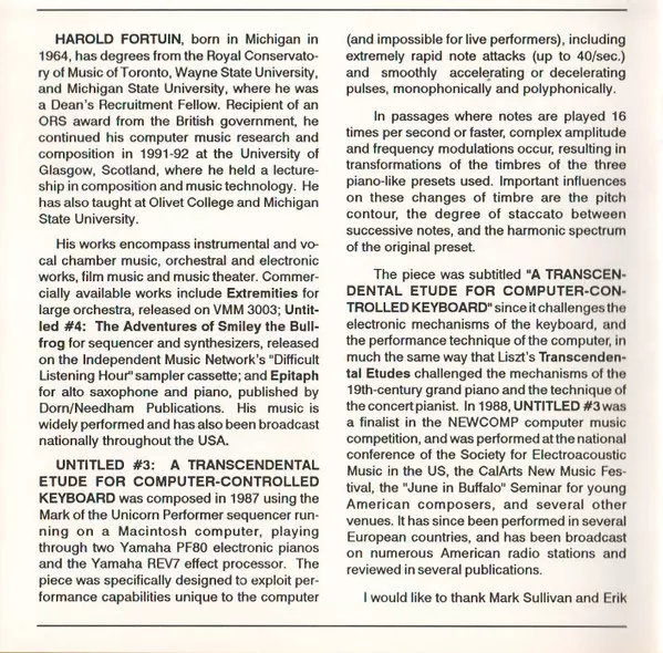 | 1 | Harold Fortuin: Untitled #3: A Transcendental Etude (For Computer Controlled Keyboard) | 7:07 min | |