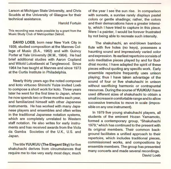 | 2 | David Loeb: Yuukuu (The Elegant Sky, For Five Shakuhachi) | 6:50 min | |