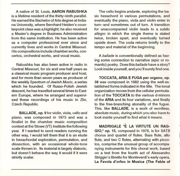 | 3 | Aaron Rabushka: Ballade, Op. 9 | 5:16 min | |