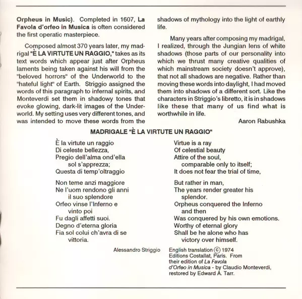 | 7 | Aaron Rabushka: Madrigal "È La Virtute Un Raggio," Op. 15 | 11:21 min | |