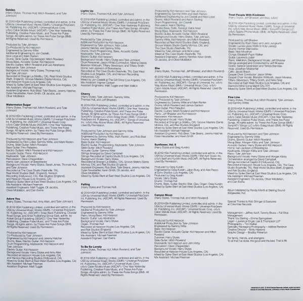 Backing Vocals Harry Styles | Choir Brandon Winbush, Nikisha Daniel, Tiffany Smith, Tiffany Stevenson | Contractor [Choir] Jason White (6) | Engineer Jeremy Hatcher, Nick Lobel, Sammy Witte | Engineer [Assistant] Matt Tuggle, Matthew Wallick | Horns Ivan Jackson (3) | Mixed By Jon Castelli | Mixed By [Assistant] Ingmar Carlson | Producer [Additional], Electric Guitar Tom Hull | Producer, Engineer, Drum Programming, Drums, Acoustic Guitar, Bass, Keyboards, Backing Vocals Tyler Johnson