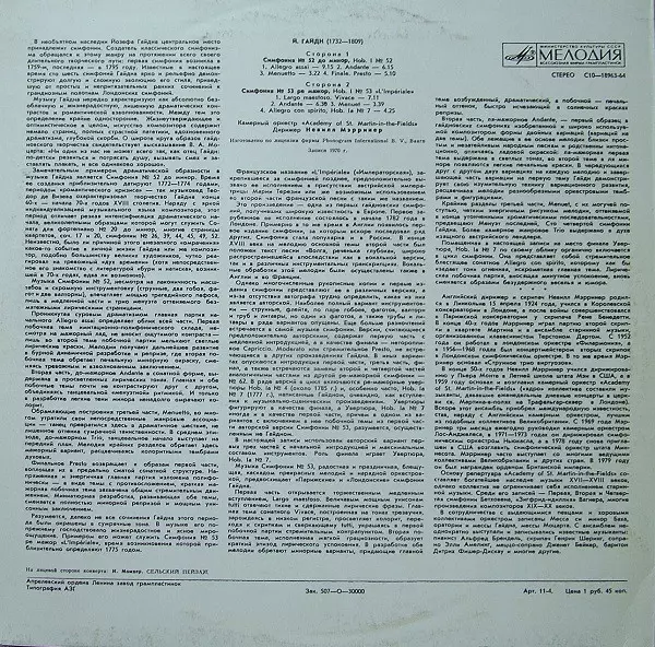 | Artist | The Academy Of St. Martin-in-the-Fields | Sir Neville Marriner | Joseph Haydn |