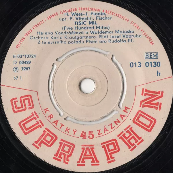 | A | Helena Vondráčková, Waldemar Matuška: Tisíc Mil (Five Hundred Miles) | ||