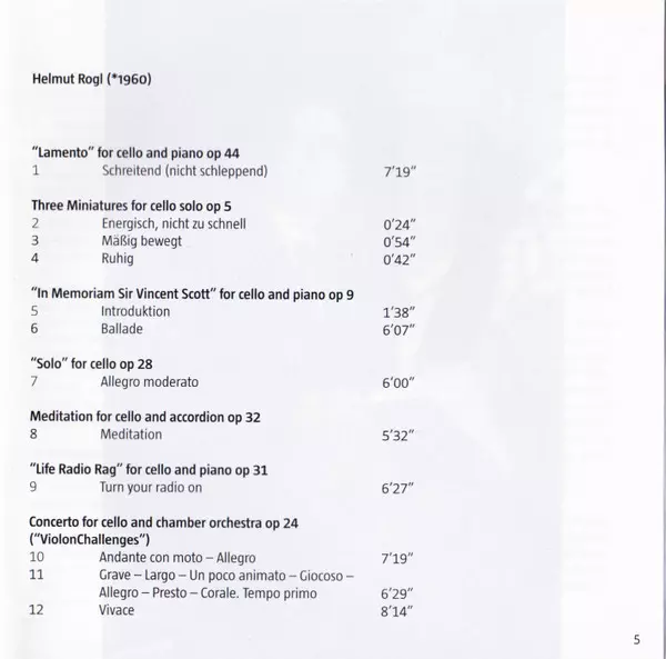 | Title | Helmut Rogl - Complete Cello Works So Far |