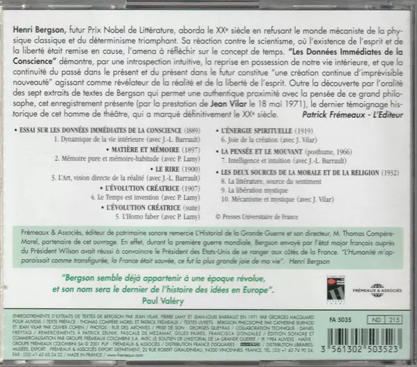| Title | Henri Bergson Par Jean Vilar, Jean-Louis Barrault & Pierre Lamy |