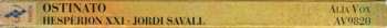 | Performer [Improvisation], Claves Pedro Estevan | Performer [Improvisation], Guitar Xavier Díaz-Latorre | Performer [Improvisation], Harp [Arpa Doppia] Arianna Savall | Performer [Improvisation], Organ Michael Behringer | Performer [Improvisation], Viola da Gamba [Viole de Gambe Soprano] Jordi Savall | |||