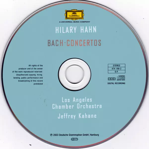 | Artist | Johann Sebastian Bach | Hilary Hahn | The Los Angeles Chamber Orchestra | Jeffrey Kahane |