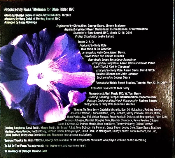 Holly Cole: Holly version on CD in Standard edition. This particular edition was published in Germany in publishing company Tradition & Moderne on 19. October 2018. Album spans genres Jazz and Contemporary Jazz.