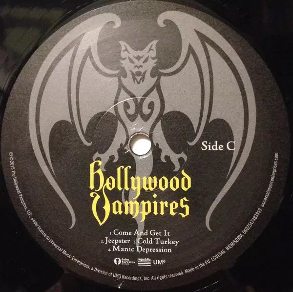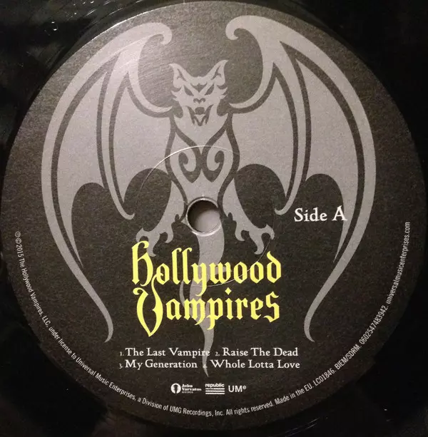 Hollywood Vampires: Hollywood Vampires version on vinyl 2LP in Standard edition. This particular edition was published in Europe in publishing company Republic Records in cooperation with UMe on 16. October 2015.