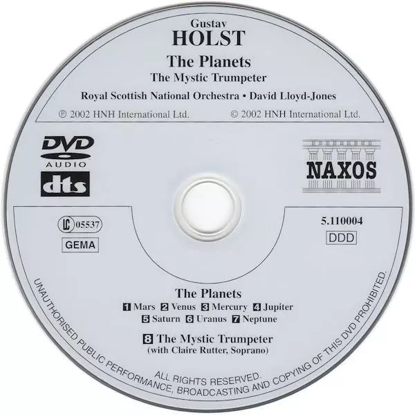 | Artist | Gustav Holst | Royal Scottish National Orchestra | David Lloyd-Jones | Claire Rutter |