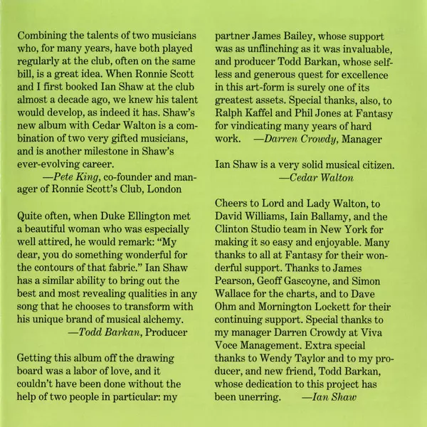 | Artist | Cedar Walton | Ian Shaw |