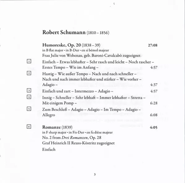 Romanze In F Sharp Major • In Fis-Dur • En Fa Dièse Majeur, No. 2 From Drei Romanzen, Op. 28 (1839) | 4:05 min | |